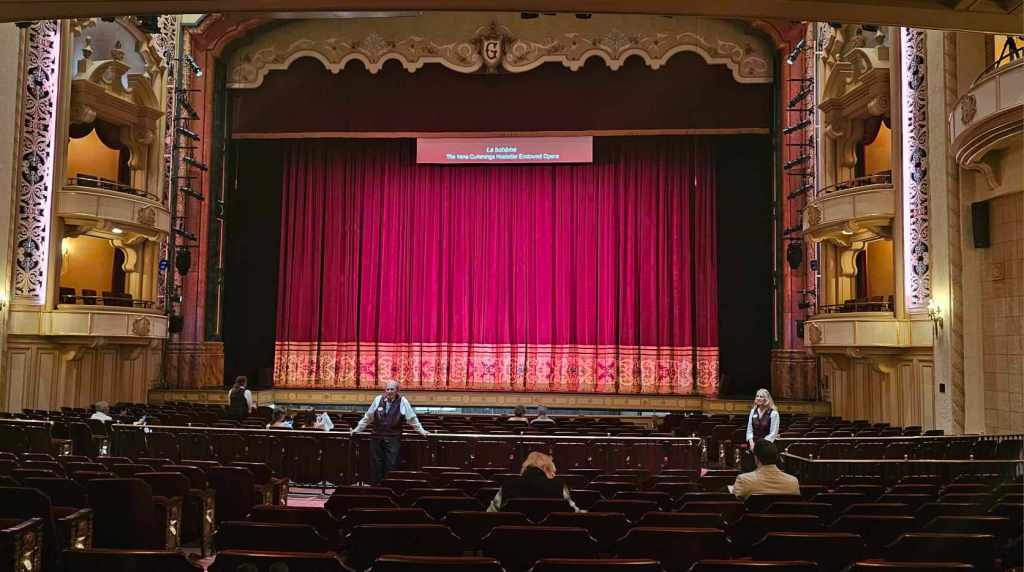 然后周日早上醒来发现期待了一整周的歌剧我买的其实是周五的票,迅速补买了周日的票,幸好还有很多座位。这次去看La Boheme,特别激动是因为导演是抓马坤,大学的时候就开始在微博上读她的文字,看见她在现场工作的身影真的很激动,不过没敢去要合照哈哈。