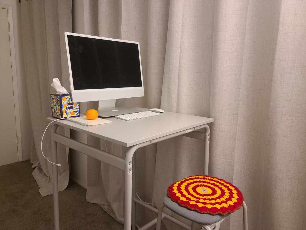 周一晚上坐在二楼卧室新搭好的书桌前打字,真的好喜欢这个宜家的书桌组合,是那种高脚的桌子和椅子,桌子放我的台式电脑刚好,把椅子拿开站着用电脑都可以。白天在这里办公可以从二楼看窗外的风景,外面还有个小阳台,新买了户外的桌子椅子,天暖和了可以从卧室走出去坐着。这么一看这个公寓真的是神仙公寓了呢。