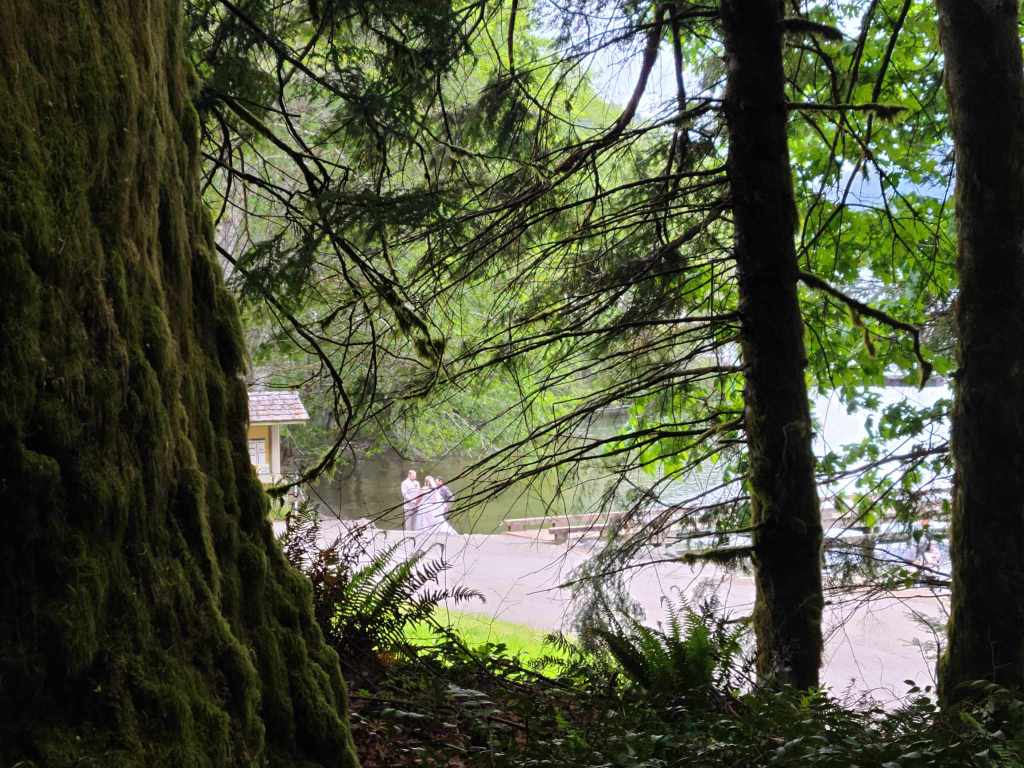 第二天起床去Olympic National Park,先去一个湖旁边,湖边看到了一对在结婚的人,很美好。说实话这个湖我觉得没有特别震撼,纽约上州也有一些湖类似这样,但是树肯定是没有这里密。我好像一向对湖不是特别有兴趣,比较喜欢海或者是溪流。