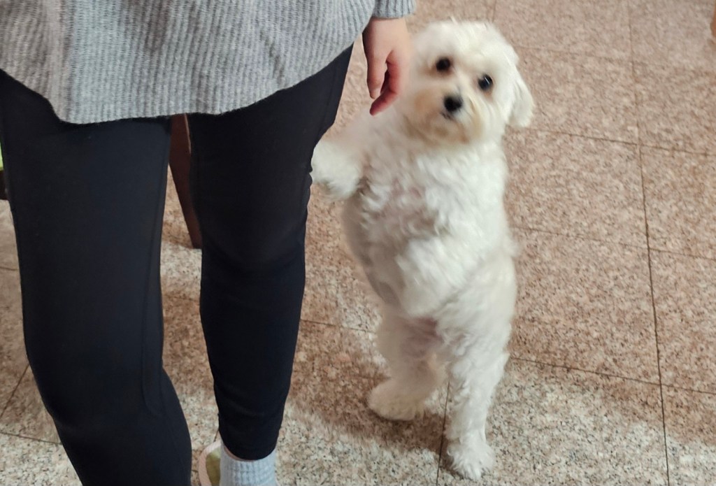 抓拍到了小狗站在我旁边的样子,好可爱哈哈。
