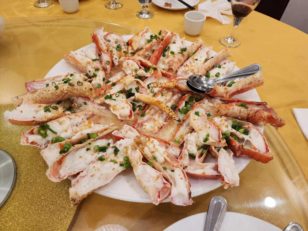晚上家庭聚餐,菜单里有帝王蟹,去年吃了一次,一直很期待,大吃了蟹腿和蟹炒饭,吃的很饱。回去和奶奶视频了一会儿,和妈妈打了电话,很累的睡了。