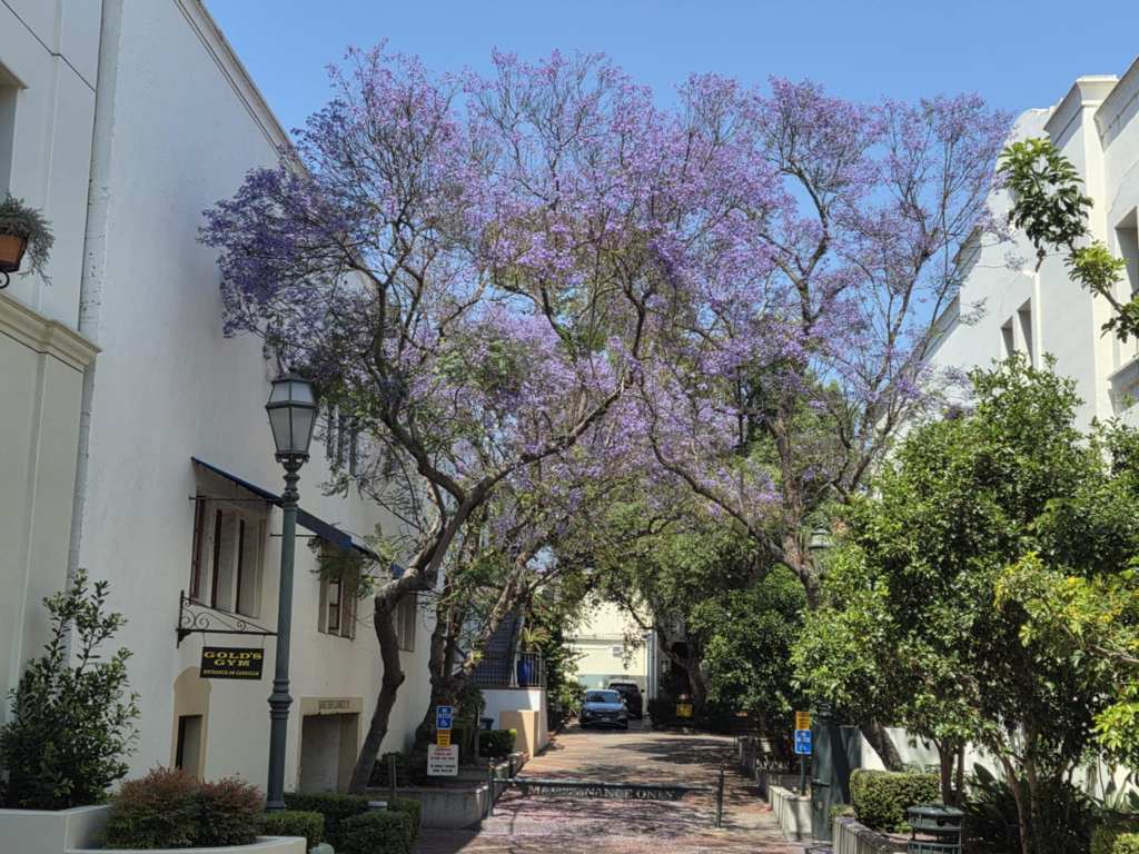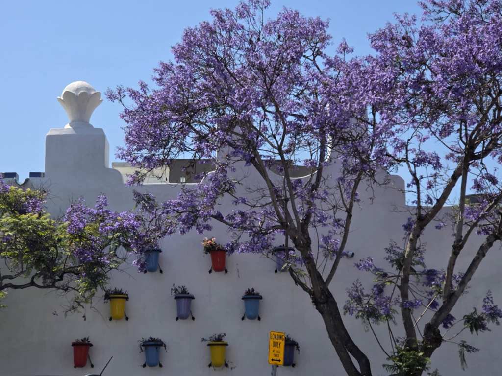 开车到downtown之后就顺着主街往下走,这种花树一点都不难找,隔一段路就有一片,慢慢的在周日下午的阳光里闲逛,一棵树一棵树的看,一棵树一棵树的拍照,每棵树搭配不同的街景各有各的美,逛的非常之开心!