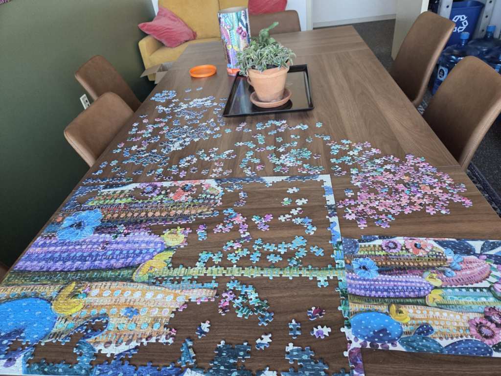 路过休息室看见有人在拼拼图。