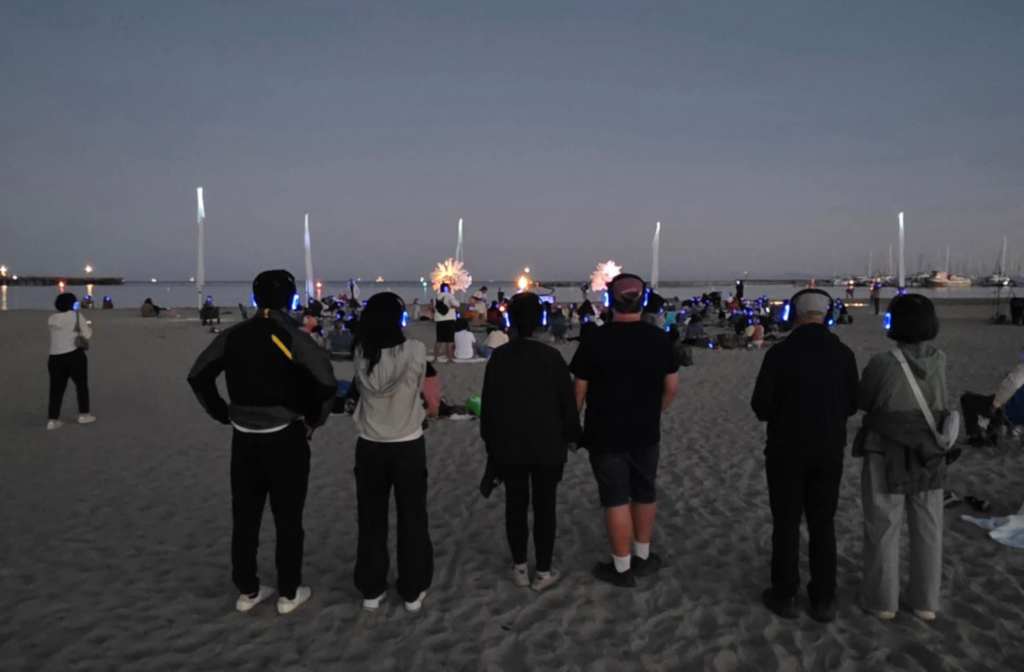 吃完之后出来在沙滩碰到一个戴耳机的钢琴音乐会,临时决定买票加入,取了耳机,从夕阳一直听到夜幕渐临。我倒是不太在乎钢琴弹的怎么样,只是时不时看看看看四周。看到这么多家人一起出现在本地我几乎有点process不过来,之前觉得父母来就已经很难想象了,我们8个人站在一起的时候真是好神奇。