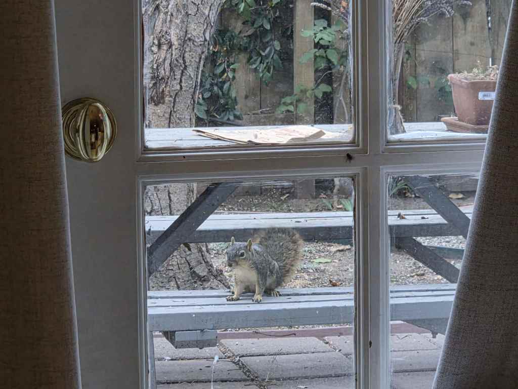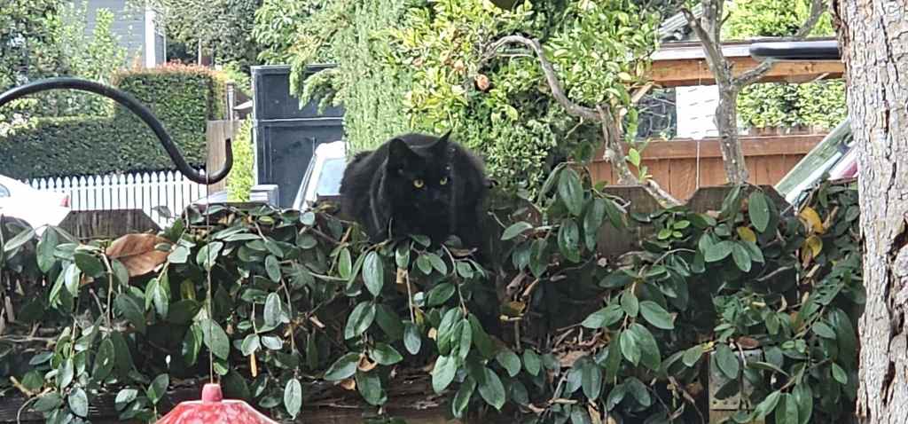 周日早上被猫打架的声音惊醒,不知道是不是billy跟tabby争领地的时候又打起来了。起来之后发现黑猫在院子角落,躲在门后观察,发现它呈现攻击姿态,赶紧跑回二楼去看,黑猫匍匐前进了一会,冲去追松鼠,我又赶紧跑下楼,发现松鼠已经跑了,在树上生气的大叫。过了一会儿黑猫走了,billy又来吃猫粮了。