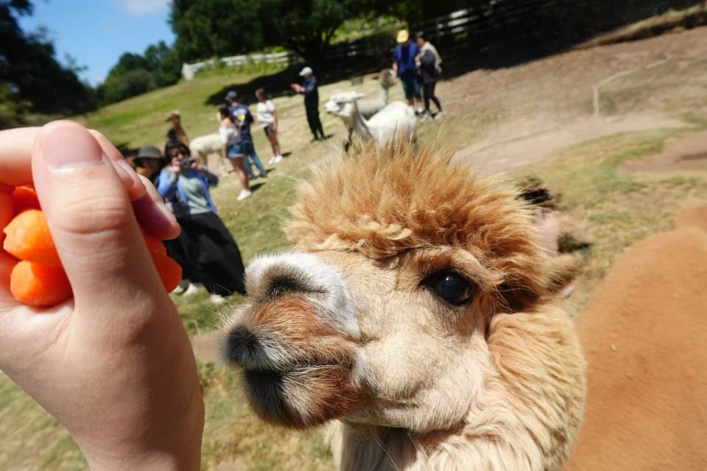 今年最爱的一张照片。羊驼在吃表妹手里的胡萝卜,我们三三两两散落在背景里。