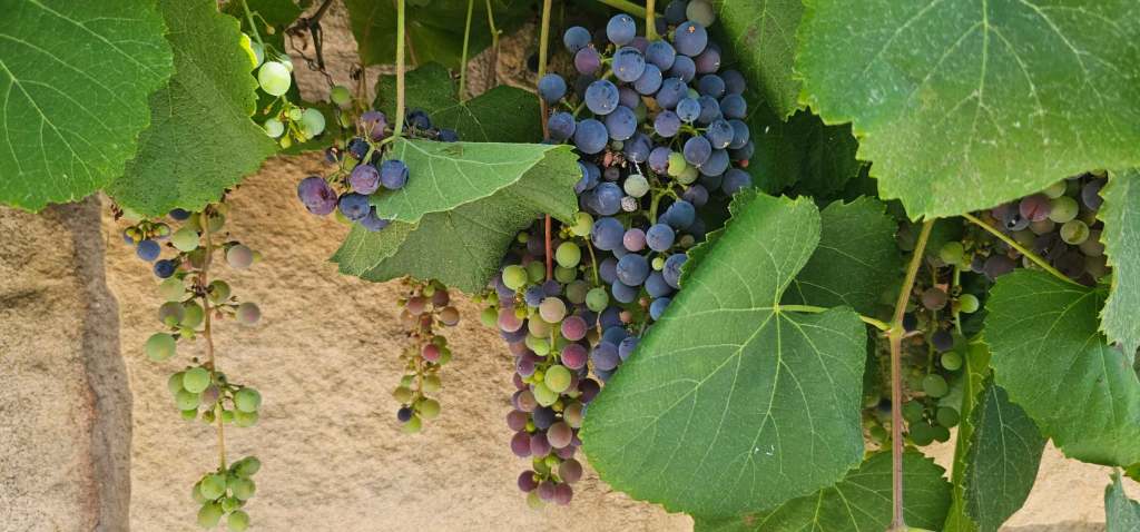 和家属在山顶的文理学院闲晃,惊喜的发现绿藤下一串一串的珍珠葡萄。