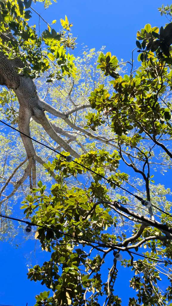 抬头发现树叶好绿。