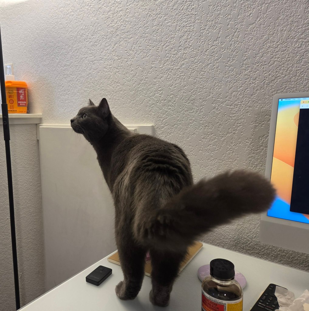 小猫这周的新进展是在我工作的时候跳上桌子,疯狂的吸鼻子到处看。