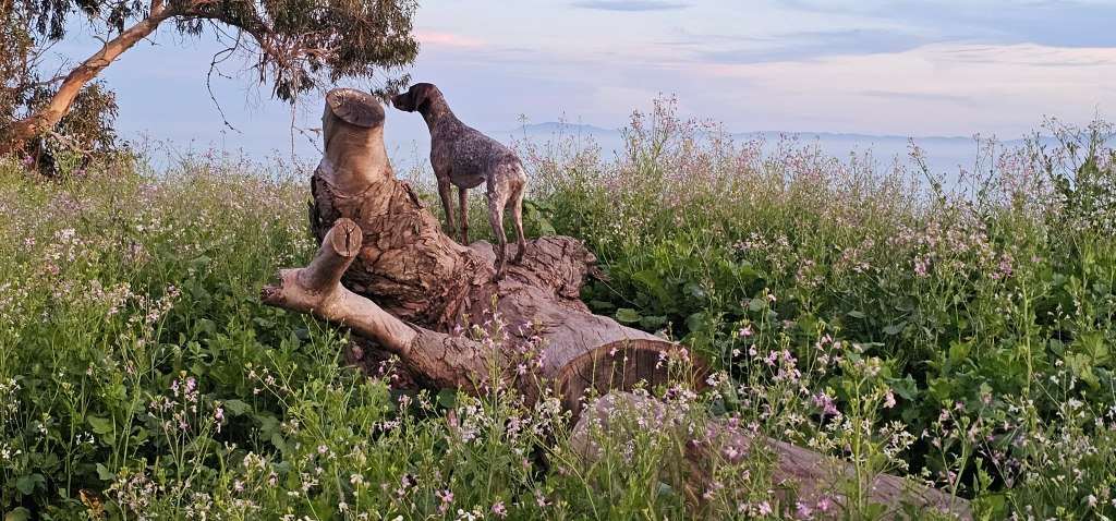 看到一只狗狗一动不动的站在树桩上好久,还以为是雕像,走近了才确认是真的狗,不知道它在干啥。